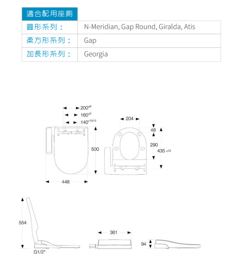 西班牙 ROCA Multiclean X Basic A804035005 圓形電子廁板 時尚型 500x448x94mm 白色