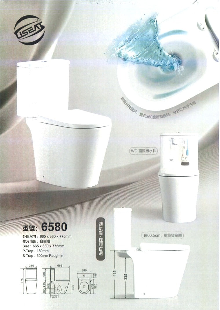 2025年- U-SEAT 6580 超強旋渦式分體自由咀座廁 (避石枕、喉管一流)