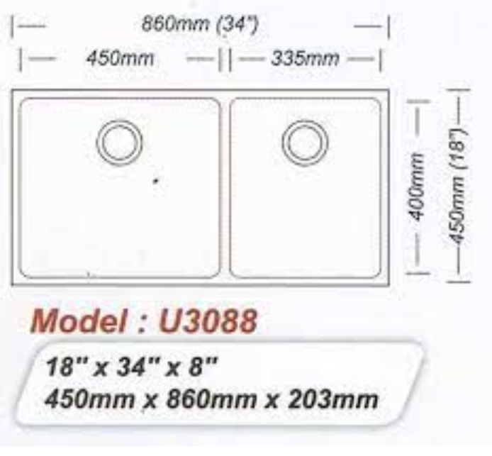 Idecor 不銹鋼枱下星盆(U3088) 450mm x 860mm