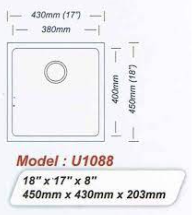 Idecor 不銹鋼枱下星盆(U1088) 450mm x 430mm