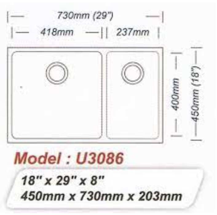 Idecor 不銹鋼枱下星盆(U3086) 450mm x 730mm