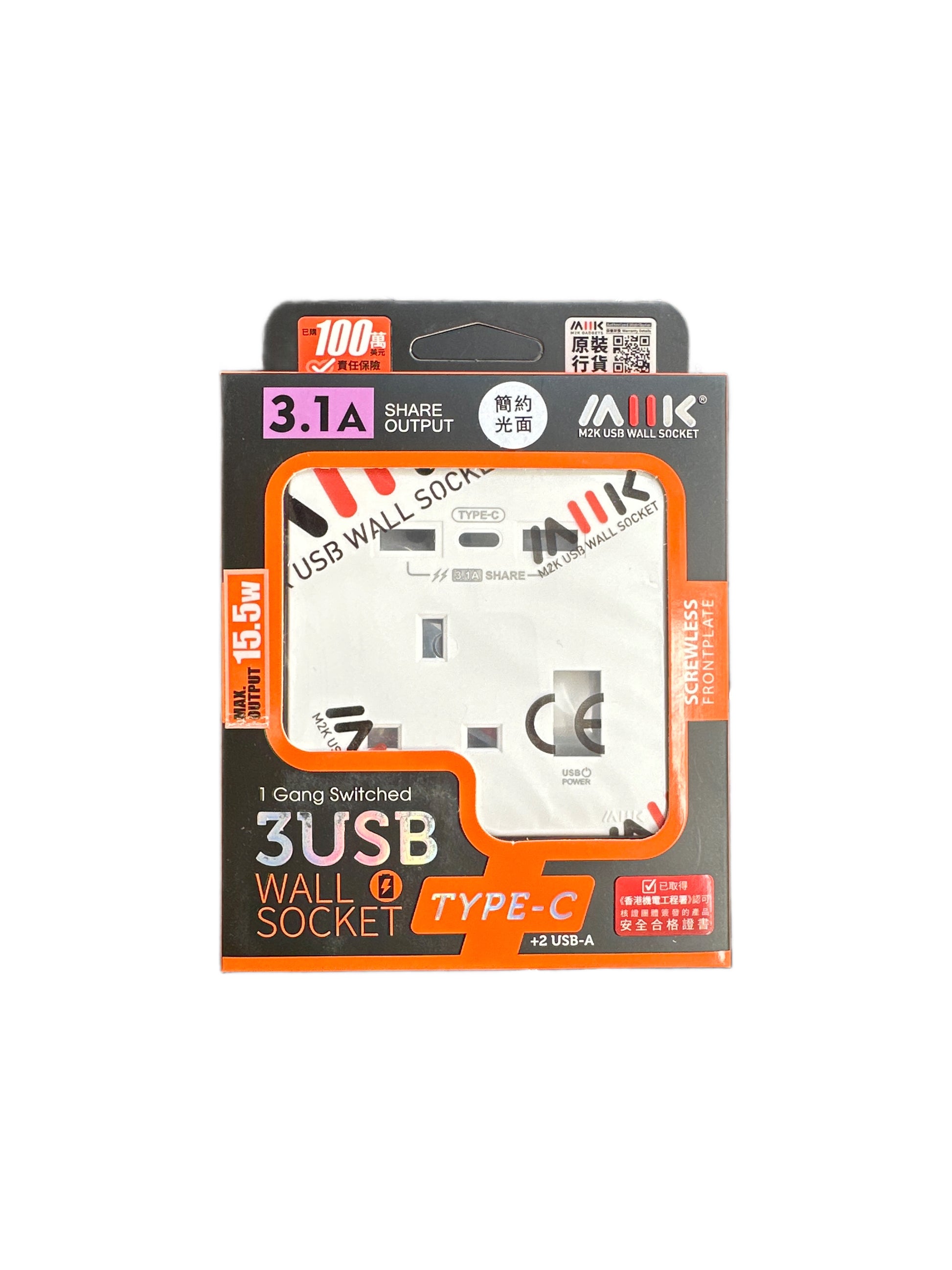 M2K 3.1A USB 單蘇 Type C + USB-A