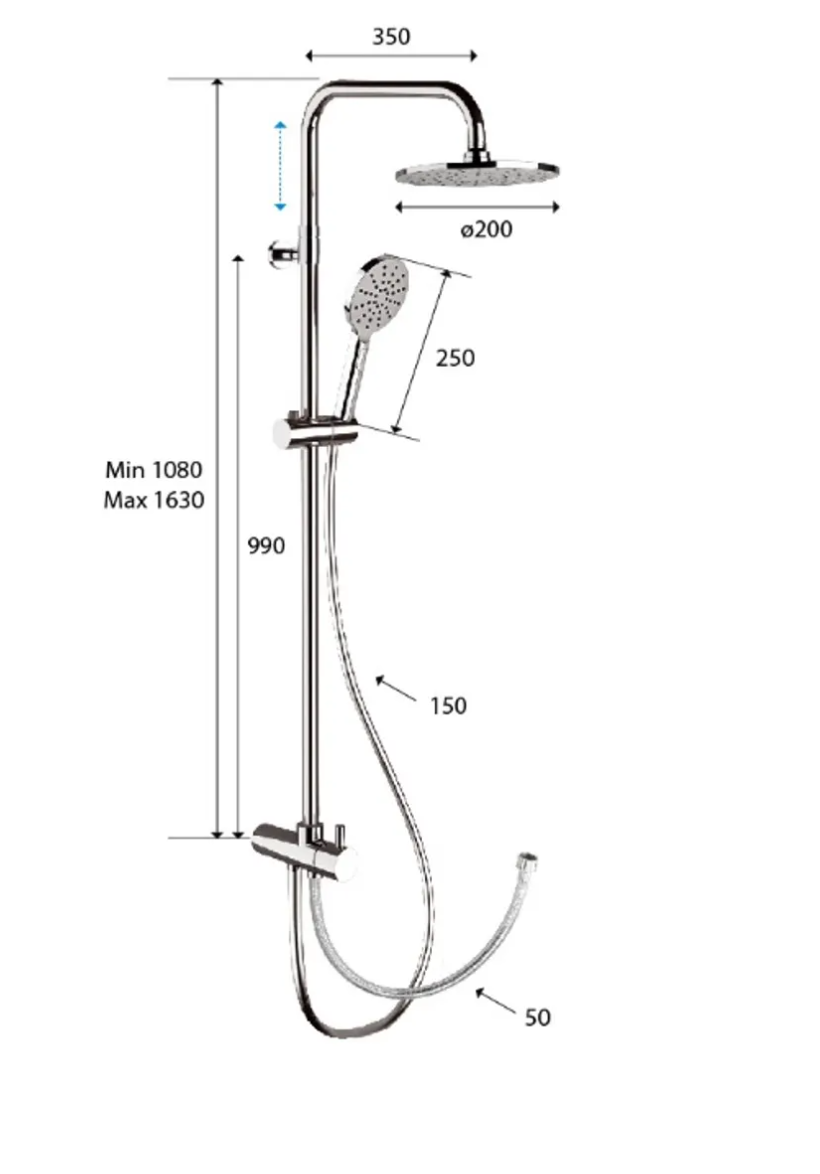 | 型號 | 面盆龍頭:AU12 (意大利製造) 浴缸龍頭:AU05 (意大利製造) 雨淋花洒連手花洒 (可調高低):330A8MPEC20NRA |