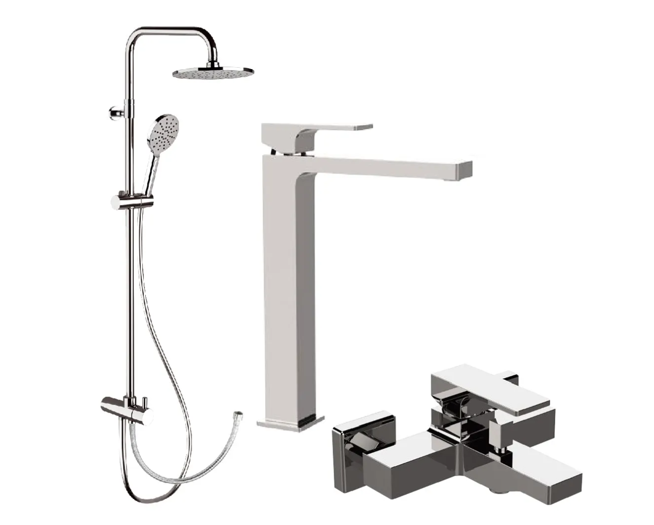 | 型號 | 高身面盆龍頭:AU11L (意大利製造) 浴缸龍頭:AU05 (意大利製造) 雨淋花洒連手花洒 (可調高低):330A8MPEC20NRA |