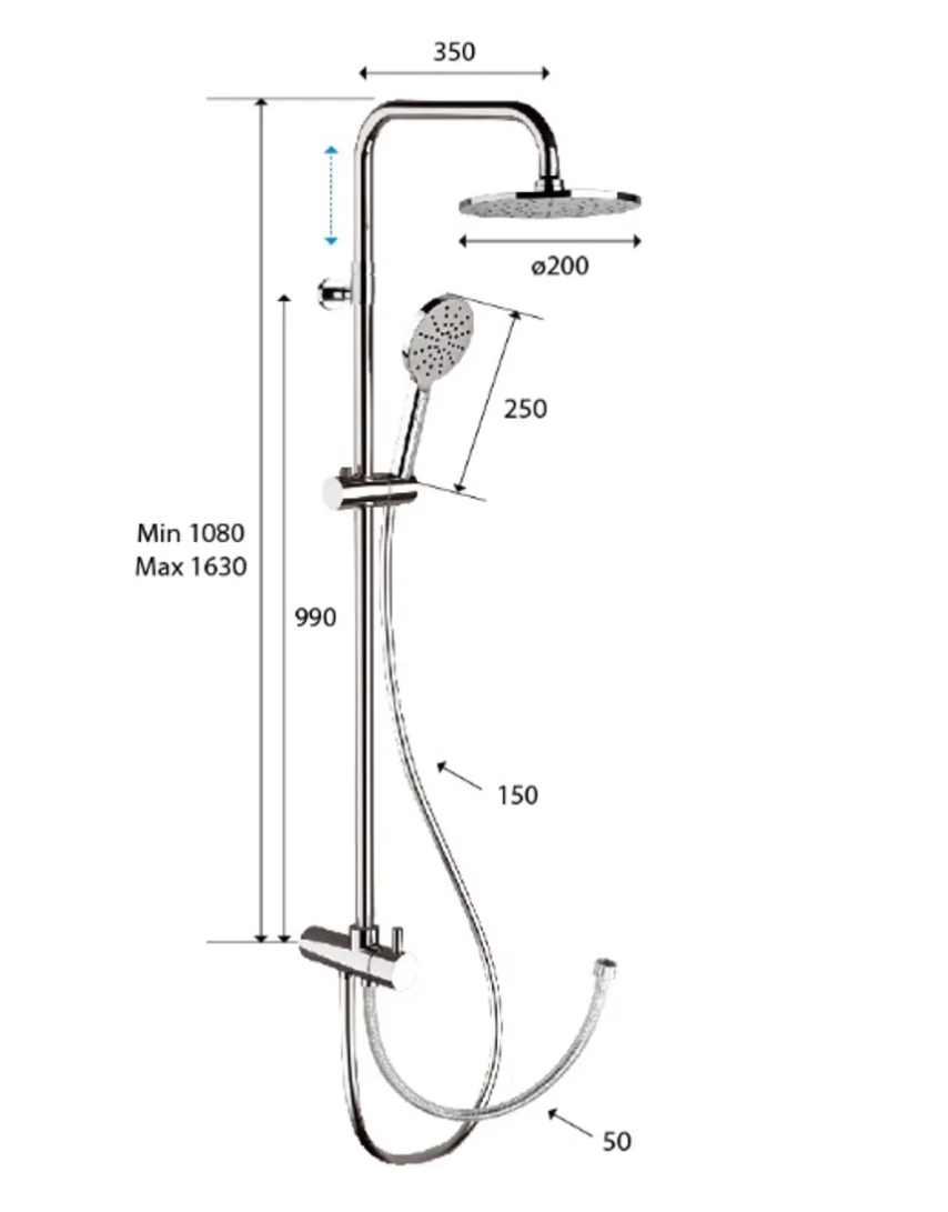 | 型號 | 高身面盆龍頭:AU11L (意大利製造) 浴缸龍頭:AU05 (意大利製造) 雨淋花洒連手花洒 (可調高低):330A8MPEC20NRA |
