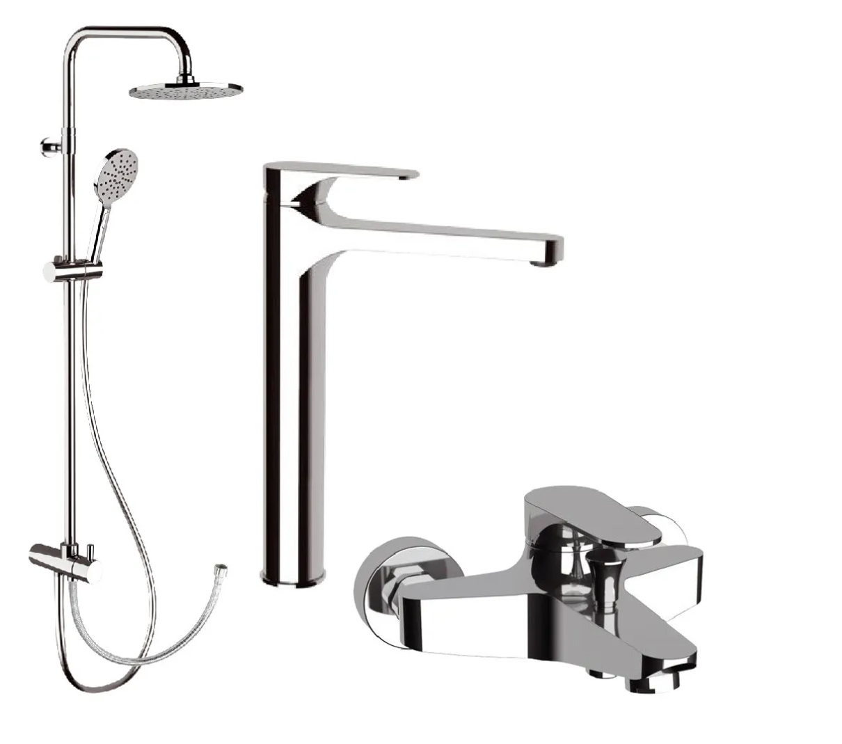 | 型號 | 高身面盆龍頭:L11LXL (意大利製造) 浴缸龍頭:L05 (意大利製造) 雨淋花灑連手持花灑 (可調高低):330A8MPEC20NRA |
