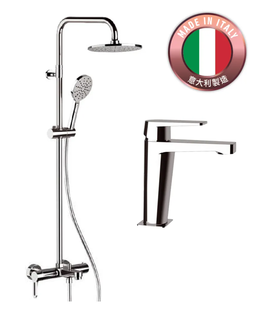 | 型號 | 面盆龍頭:D11 (意大利製造) 花灑套裝連浴缸龍頭 (可調高低):W34A8MPEC20 (意大利製造) |