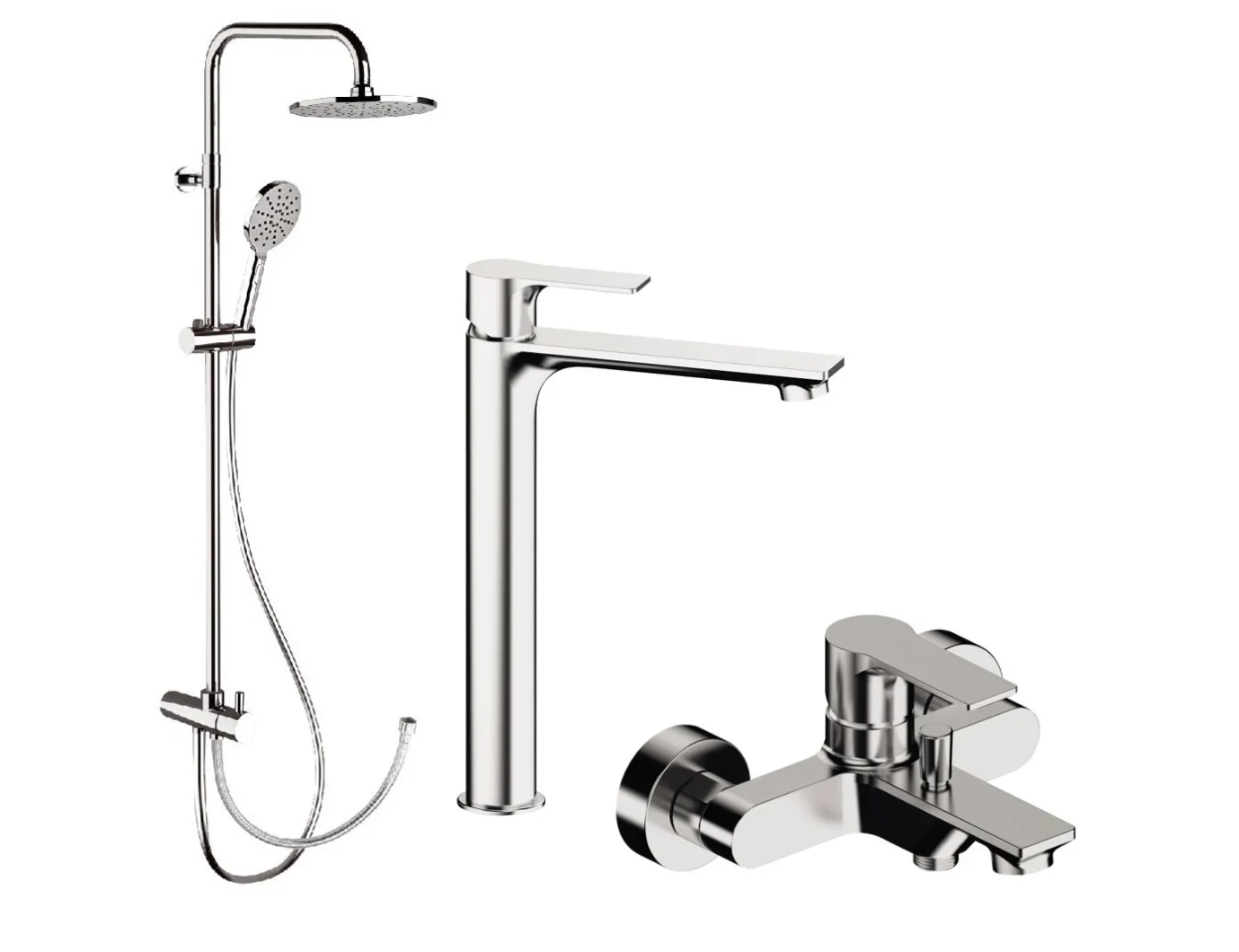 | 型號 | 高身面盆龍頭:EY11L (意大利製造) 浴缸龍頭:EY05 (意大利製造) 雨淋花灑連手持花灑 (可調高低):330A8MPEC20NRA |