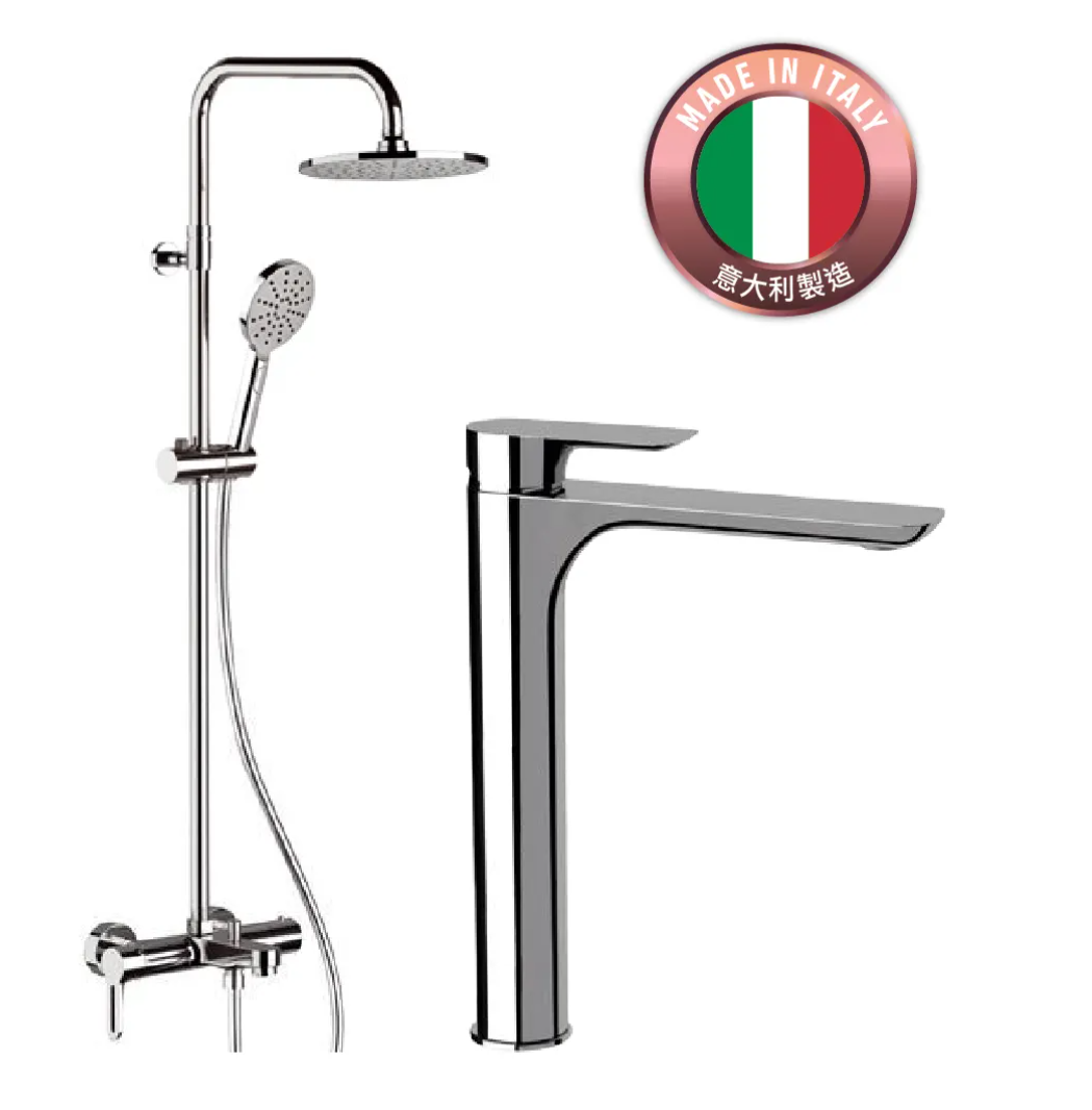 | 型號 | 高身面盆龍頭:I11L (意大利製造) 花灑套裝連浴缸龍頭 (可調高低):W34A8MPEC20 (意大利製造) |