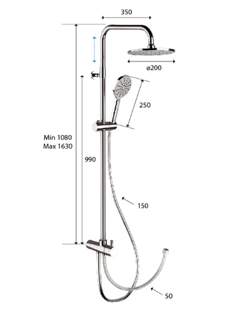 | 型號 | 面盆龍頭:W11 (意大利製造) 浴缸龍頭:W05 (意大利製造) 雨淋花灑連手持花灑 (可調高低):330A8MPEC20NRA |