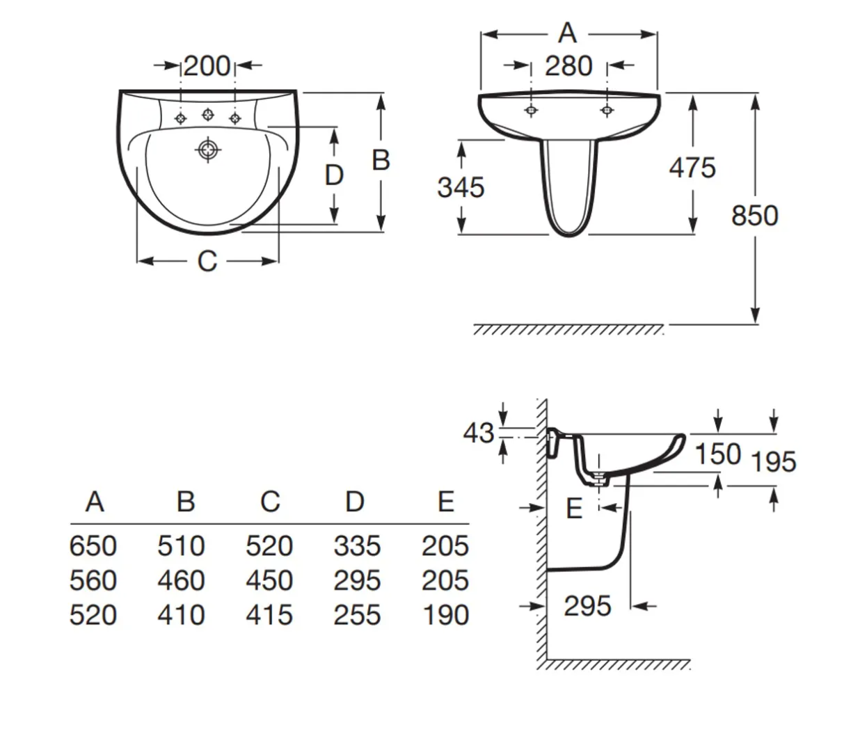 Roca A327394000 Victoria 掛牆面盆 520x410x195mm 白色