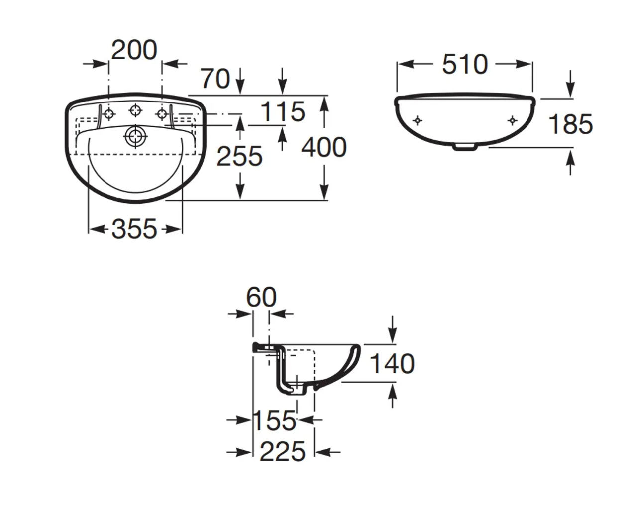 Roca A32739E000 Laura 半掛面盆 510x400x185mm 白色