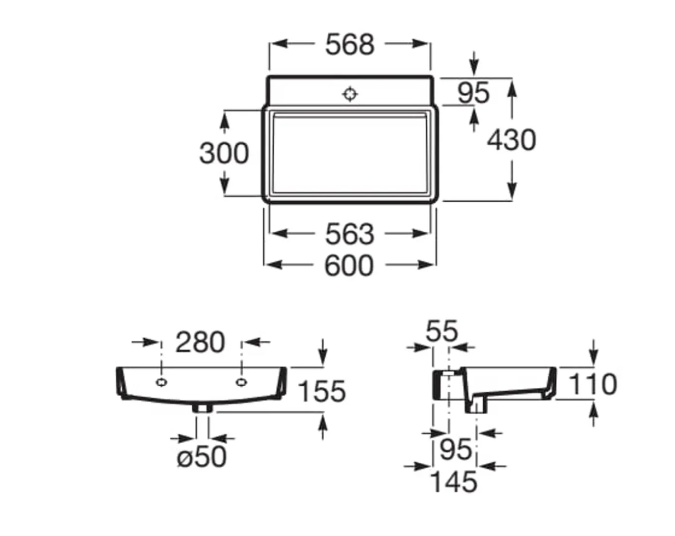 Roca A327694000 Tura 檯上盆/掛牆面盆 600x430x155mm 白色