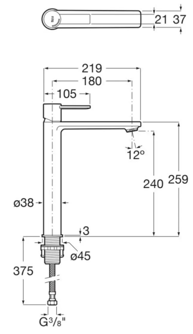 Roca A5A345FC00 Targa 高身面盆龍頭 鍍鉻色