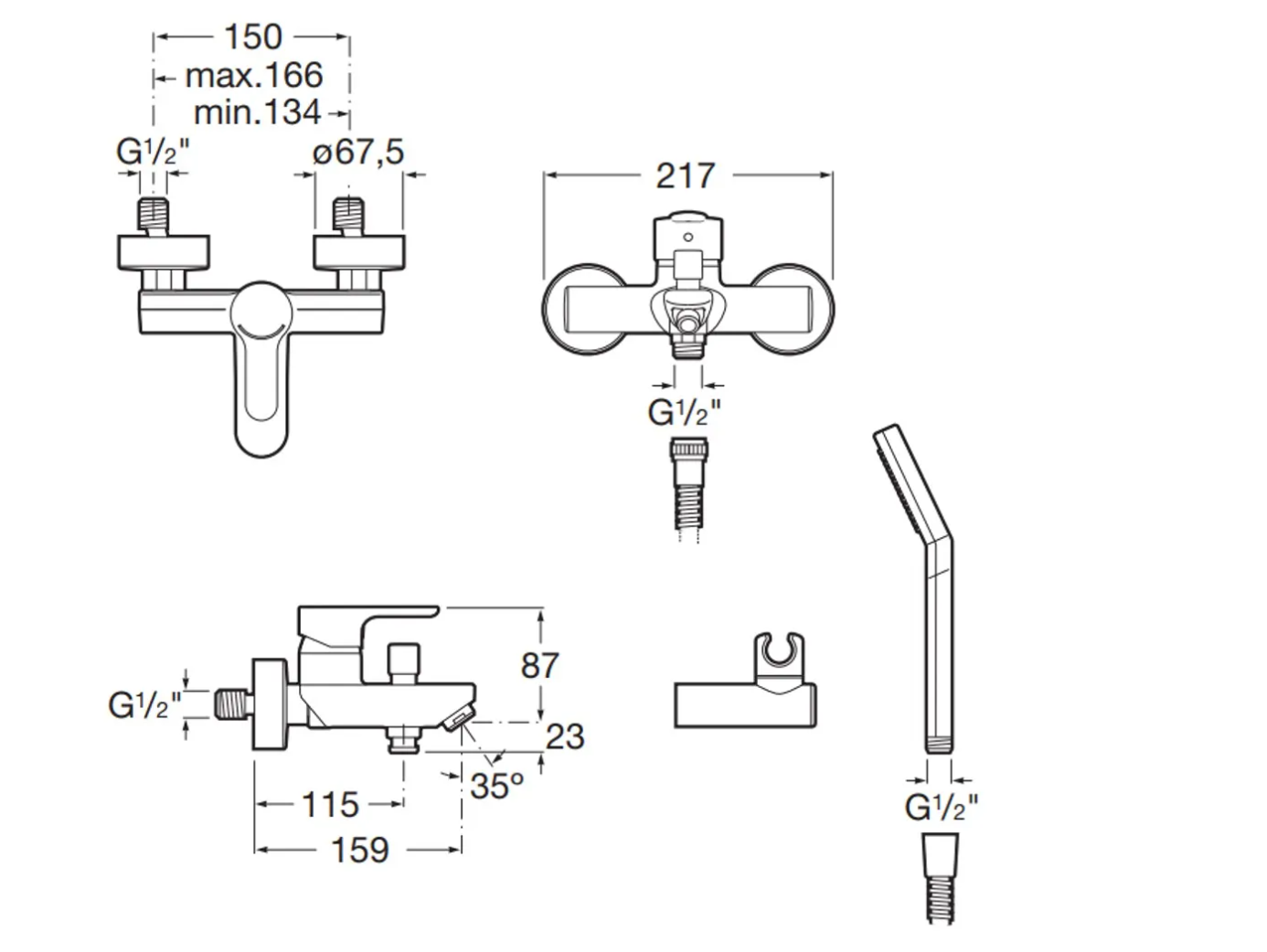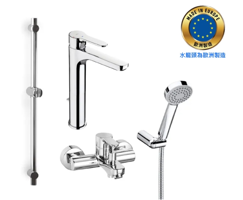 | 型號 | 高身面盆龍頭:A5A3C09C00 (歐洲) 掛牆式浴缸龍頭連花灑:A5A0109C02 (歐洲) 花灑企柱:Z526319610 (中國) |