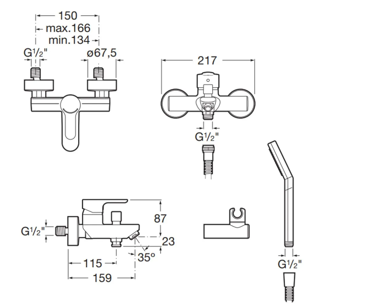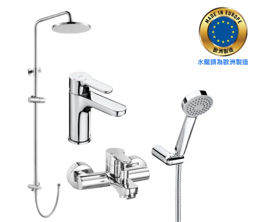 | 型號 | 面盆龍頭:A5A3K09C00 (歐洲) 掛牆式浴缸龍頭連花灑:A5A0109C02 (歐洲) 圓形淋浴柱:A5B5450C0N (中國) |